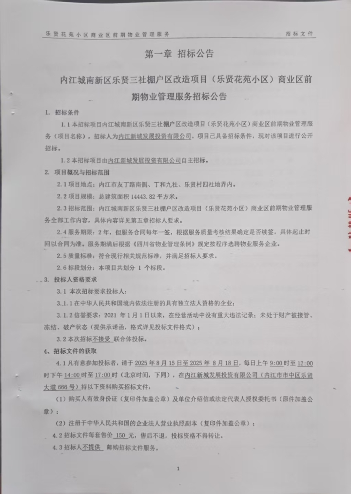 內(nèi)江城南新區(qū)樂賢三社棚戶區(qū)改造項(xiàng)目(樂賢花苑小區(qū))商業(yè)區(qū)前期物業(yè)管理服務(wù)