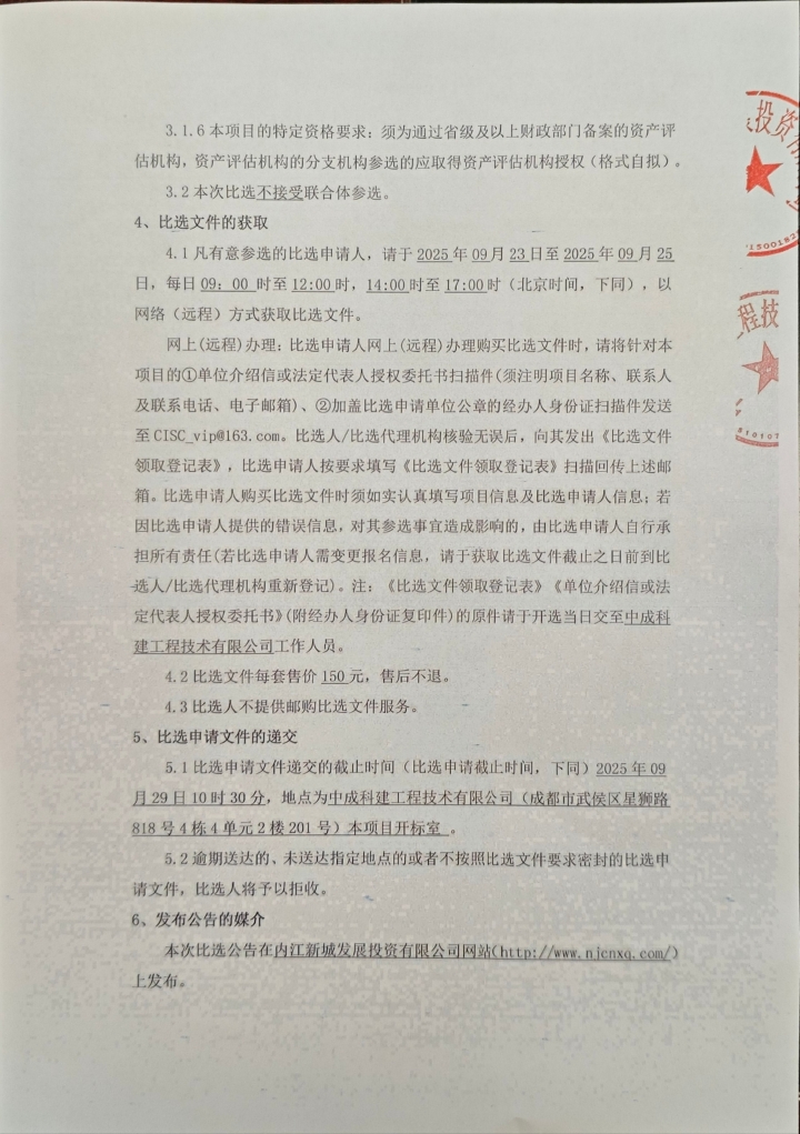內(nèi)江新城發(fā)展投資有限公司資產(chǎn)評估服務(wù)比選公告