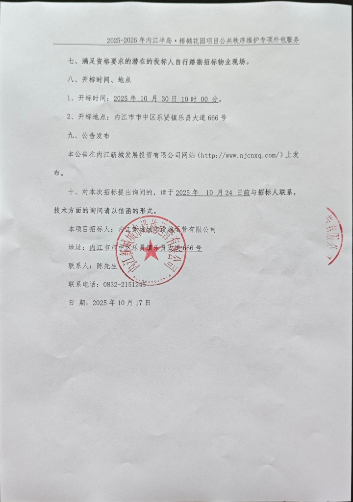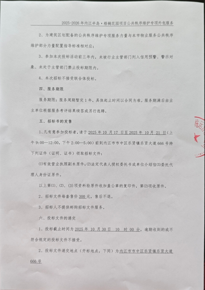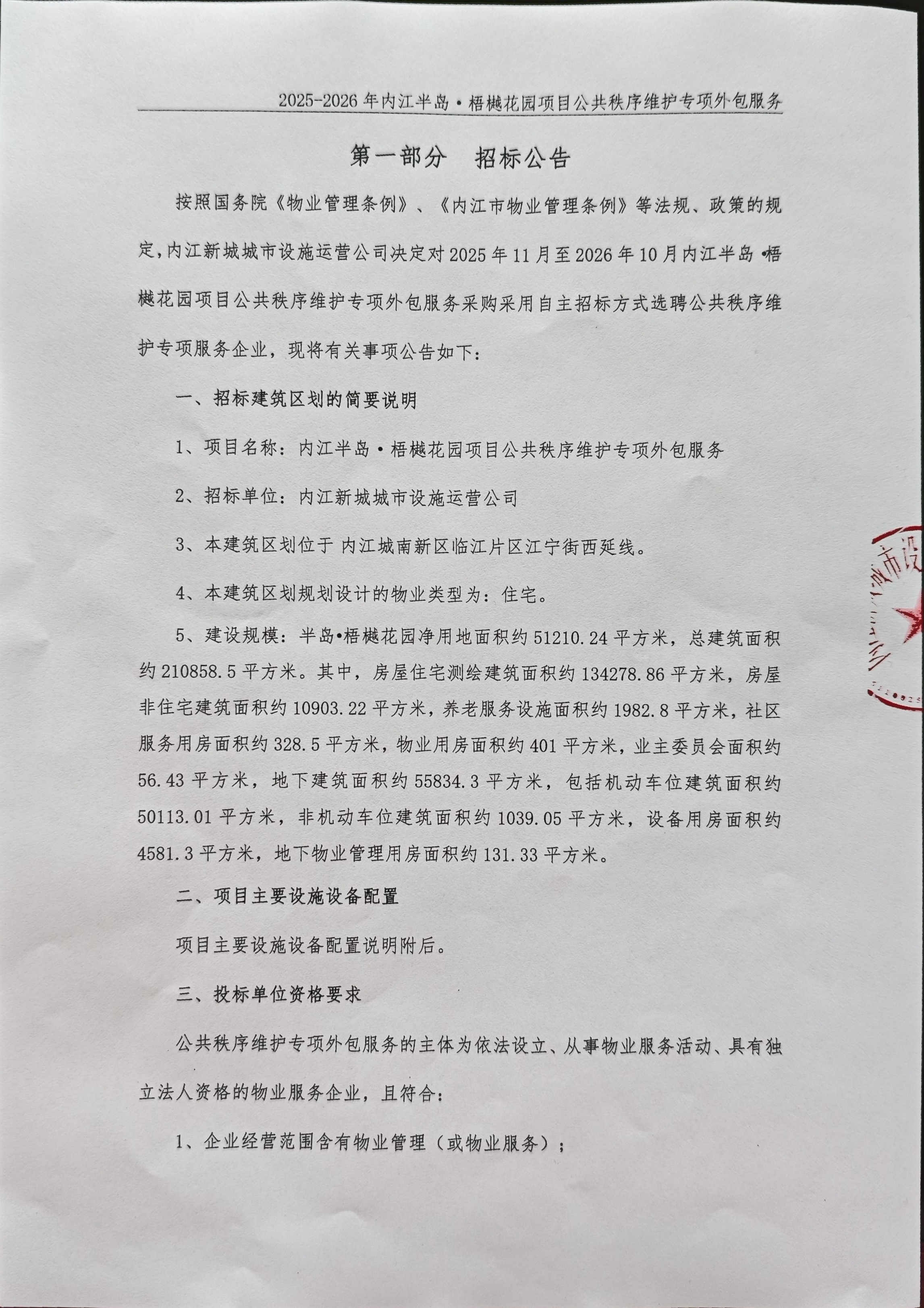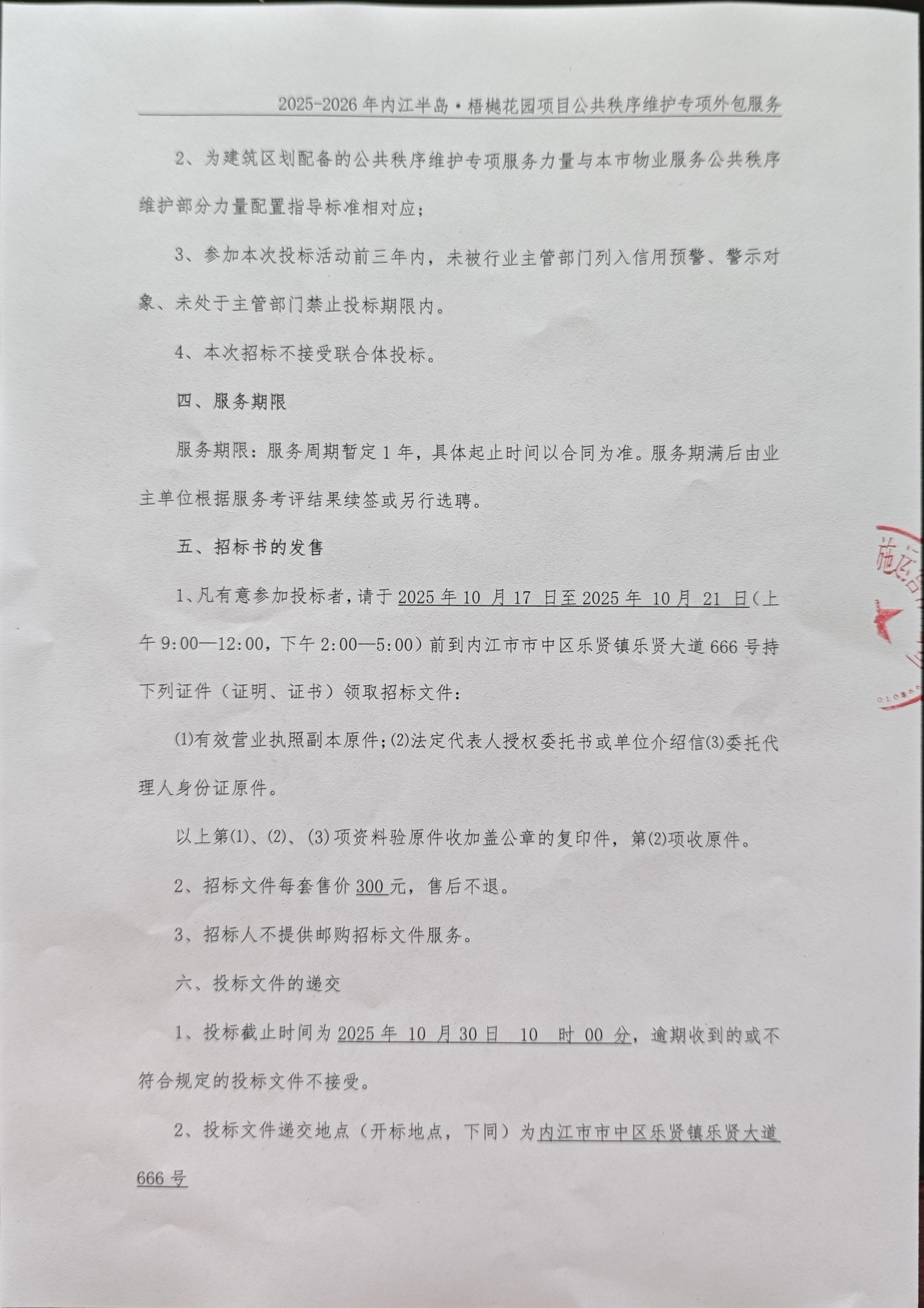 2025年內江半島·梧樾花園項目公共秩序維護專項外包服務招標文件